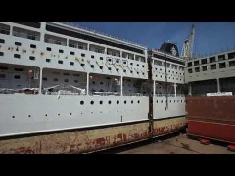 The cruise liner was cut in half and a new 32 meter section was added, a short video below shows this.
